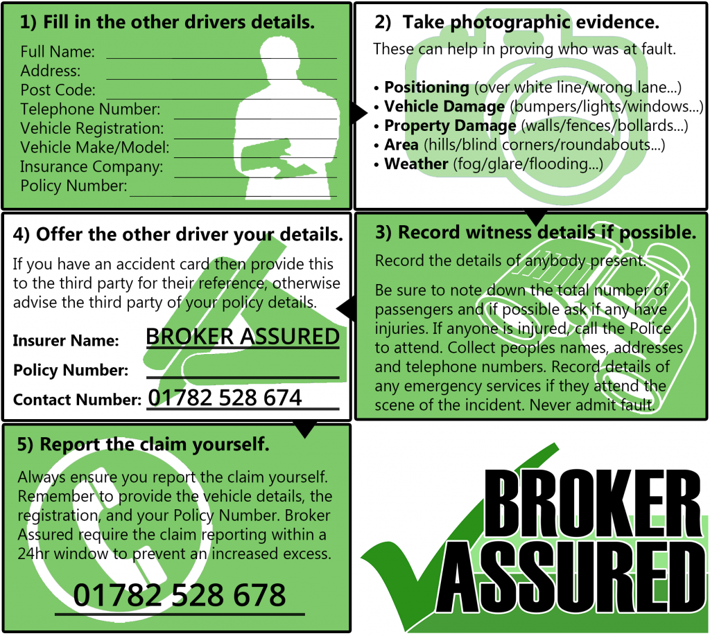 When contacting to report your claim, the advisor you speak with will ask you some questions about the circumstances, the vehicles involved and other related information. It is important that you have as much detail to hand as possible to assist with recording the events of the claim. This will help to ascertain fault, and minimise the costs of settling the claim.